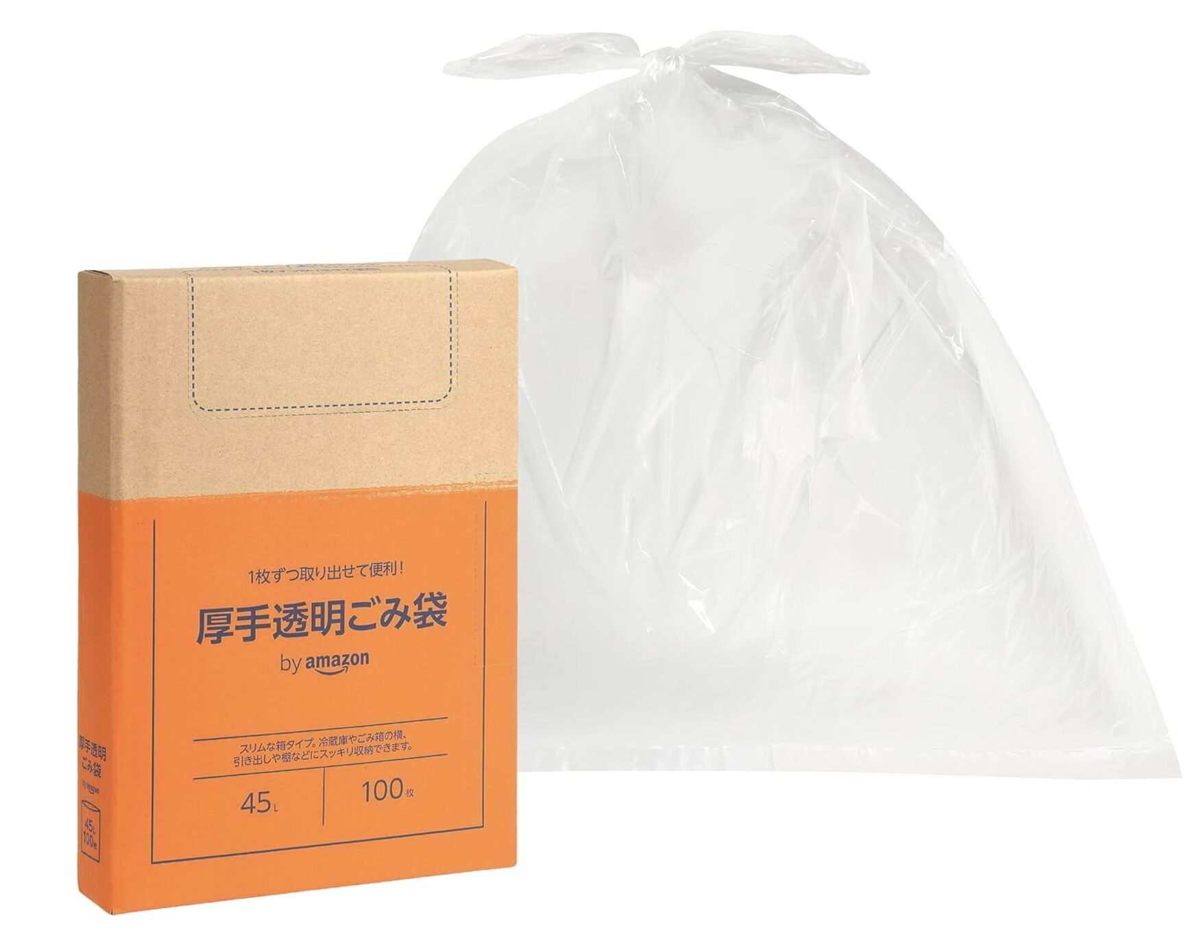 by Amazon 厚手 ごみ袋 透明 つるつるタイプ 45L 100枚 (kuras)